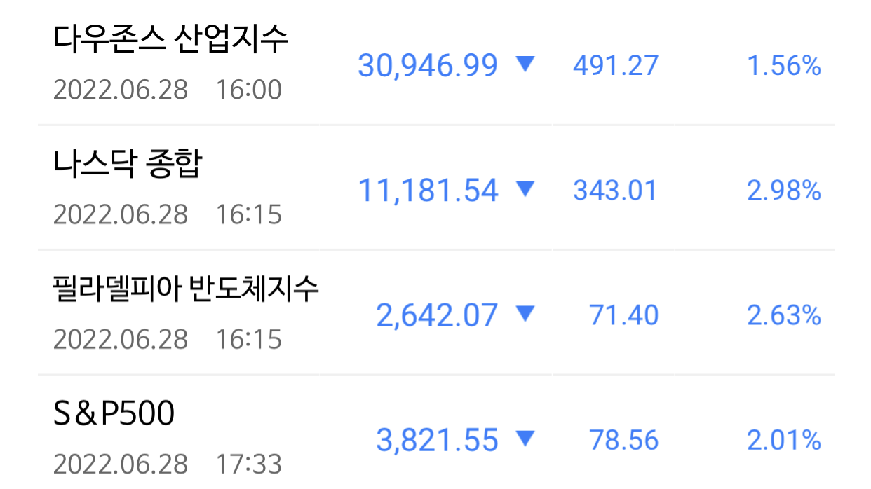 | 등이 휘어버린 지난 밤의 미국 증시 (1) | 2022.06.28 |