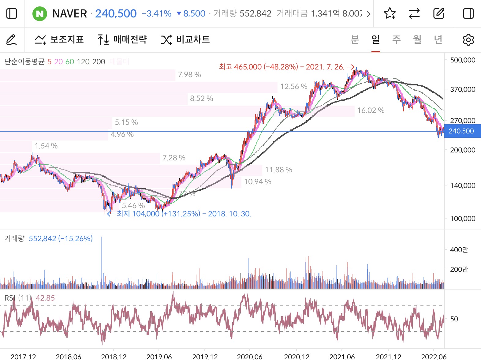 네이버는 오늘도 *나게 빠지는 중이다. 하루 만에 3% 넘게 빠졌다. 최근 내부자 매도 관련 기사들이 보이는데 이것 때문일까? 아무리 그래도 물적분할해대는 카카오보다는 나을 것 같은데 이상하다. 일단은 (사실은 크게 물려서 어쩔 수 없이) 관망 중이다.
