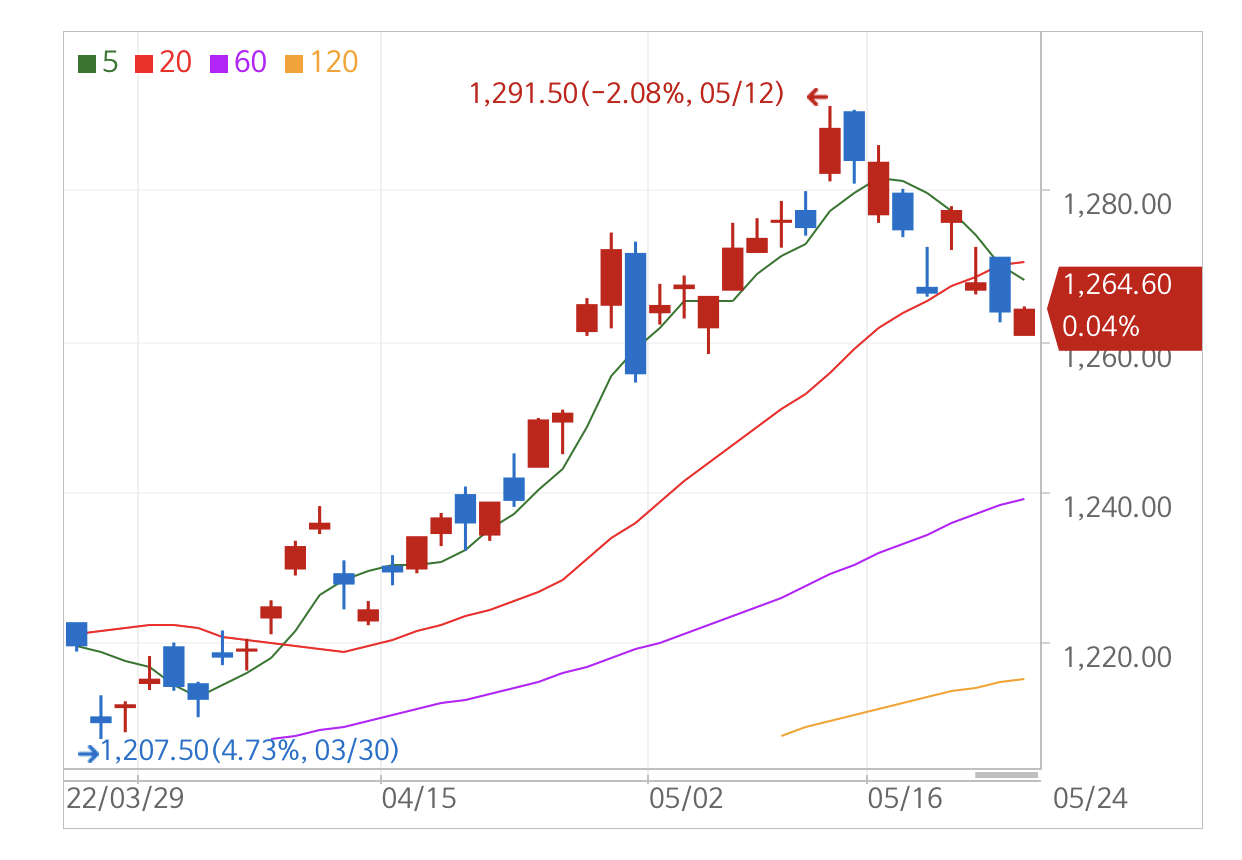 환율의 일주일 간의 시세 흐름이 한 달 간의 시세를 역행하기 시작한 것처럼 보인다. 그렇다면 환율이 피크를 찍고 내려가기 시작했다고 볼 수도 있다.