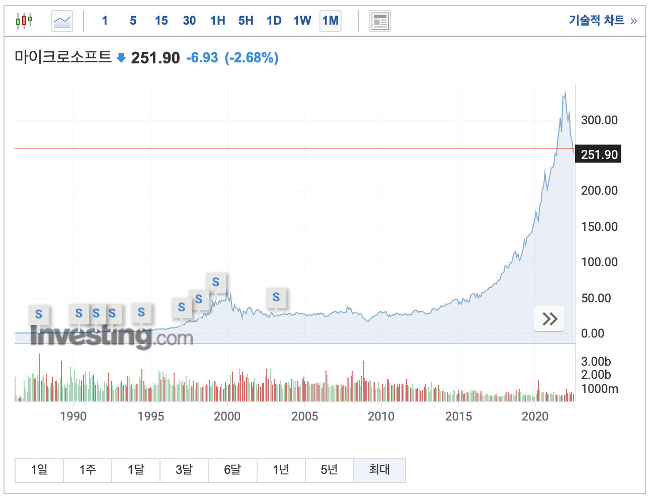 주가는 미국 시가총액 2위라는 대형 종목에도 불구하고 3% 가까운 큰 하락을 보였다. 그나저나 이렇게 멀리서 주가를 바라보니 최근에 정말 많이 떨어지긴 떨어졌다. 몇 주 안 되지만 그래도 애정을 가지고 있는 주식인데 슬플 따름이다.