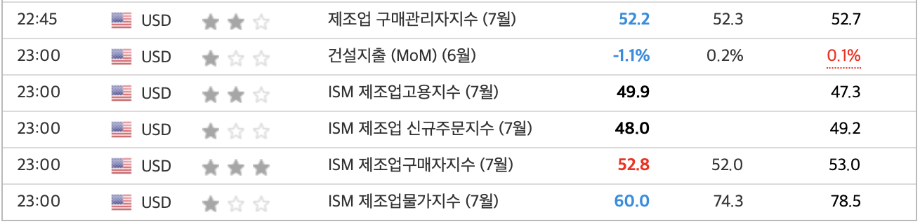 오늘은 미국 경제를 가늠할 주요 지표로 PMI 및 ISM PMI가 발표되었다.