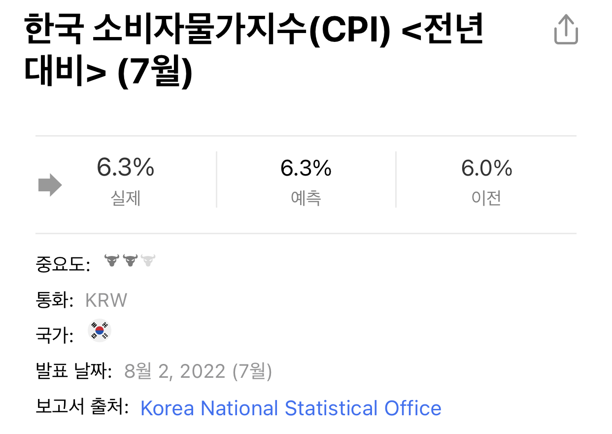 6.3%는 아마도 한국에서는 외환위기 이후론 처음 보는 수치일 것 같다. 사실상 역대급 물가다.