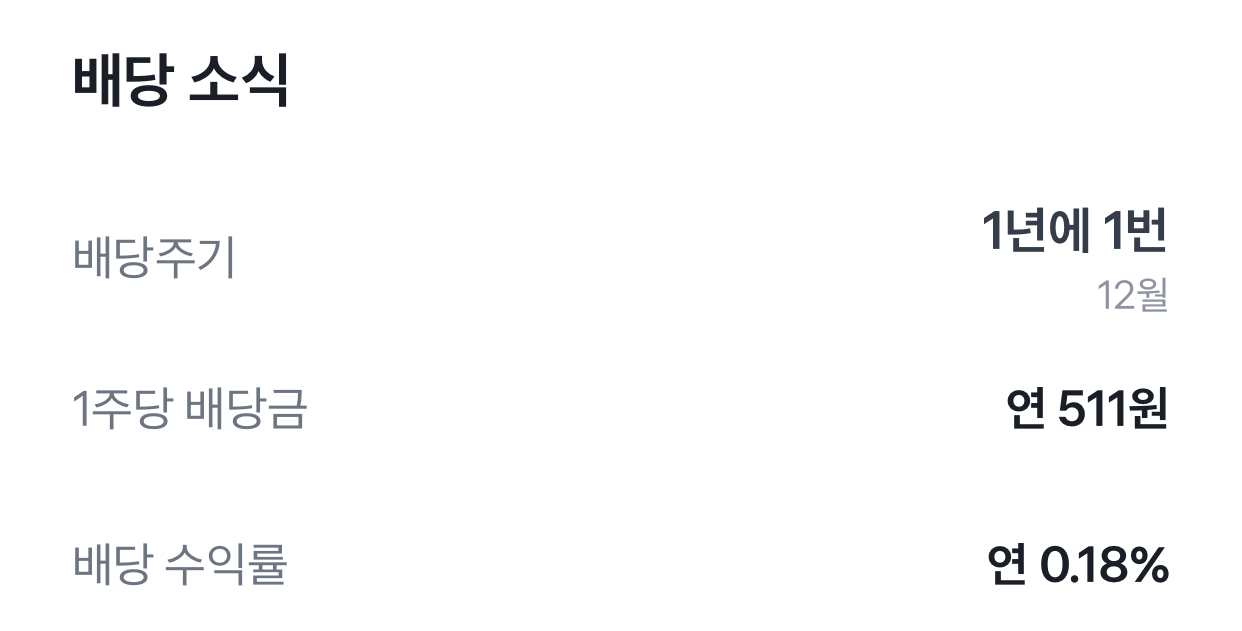 위 스크린샷에 찍힌 가격 기준으로 한 주당 배당수익률을 계산해보면 0.3%다.