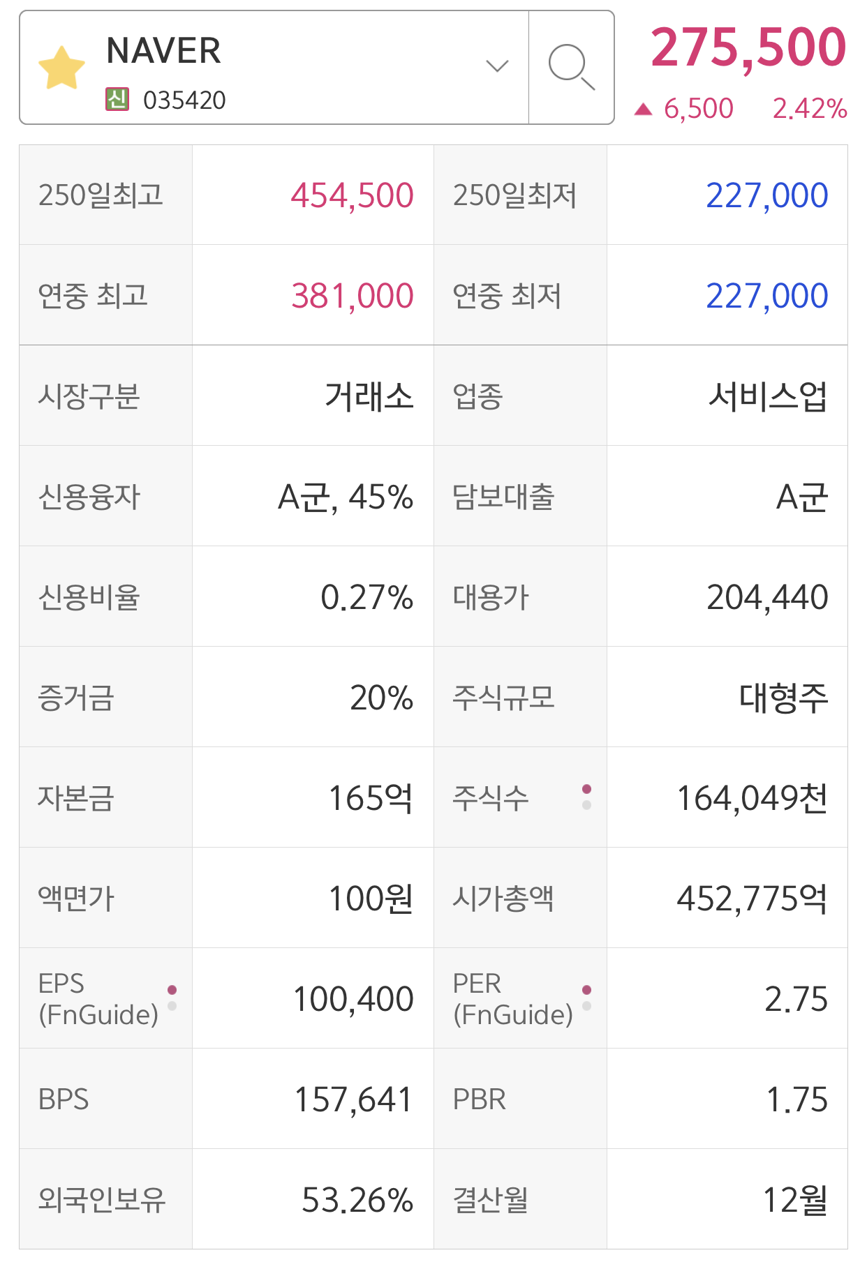 네이버의 주식 수는 164,049,000개다.