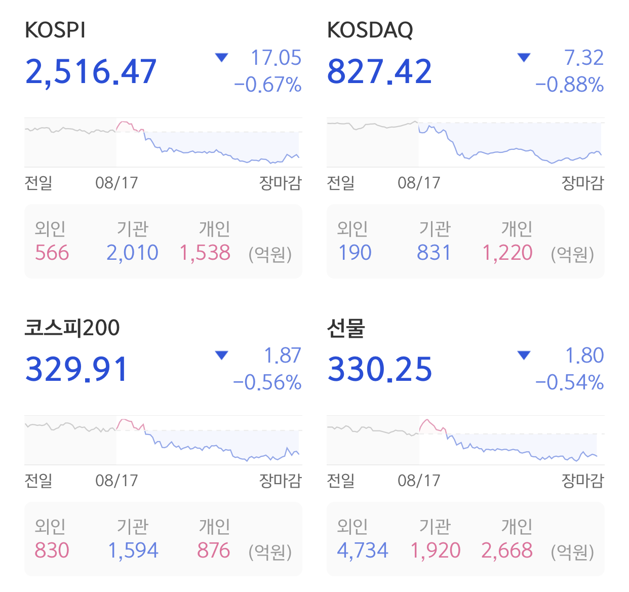 오늘 국장은 다른 말 할 것 없이 그냥 떨어졌다.