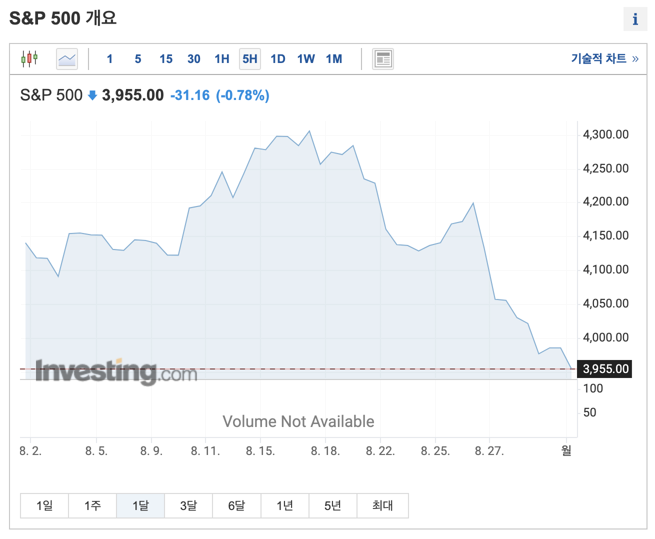 금요일 잭슨홀 미팅의 파월 한 마디가 문제가 출발이었을까? "침체보다는 물가"라는 그의 발언에 이어 몇몇 연준 인사들의 매파 발언도 공포심에 불을 붙이는 것 같다.