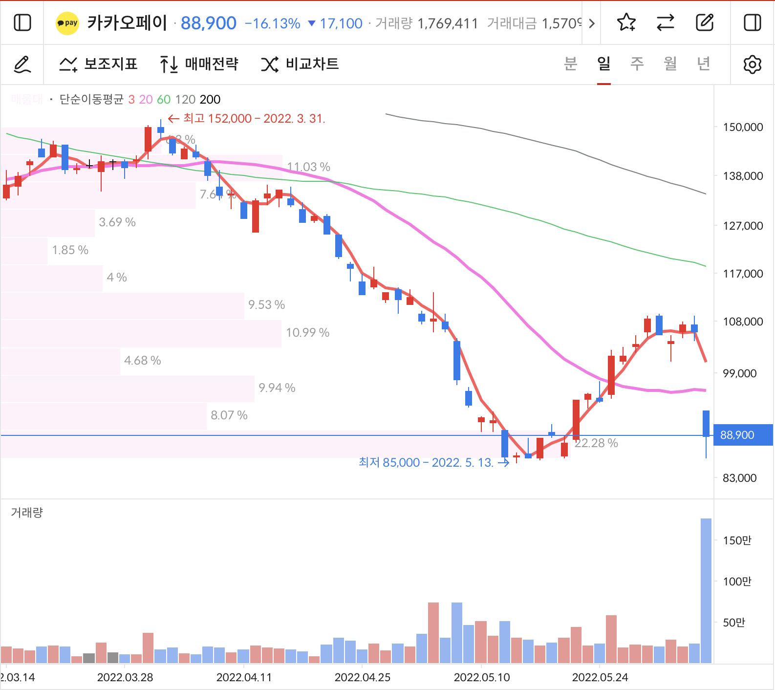 애초에 중국 자본이 들어와 있다는 것 자체가 카카오페이를 저평가시키는 원인 중 하나였는데 역시나 이렇게 되어버렸다. 그렇다고 악재 해소가 되는 건 아니다. 알리페이의 일부 지분만 블록딜 하는 것뿐이니 말이다.