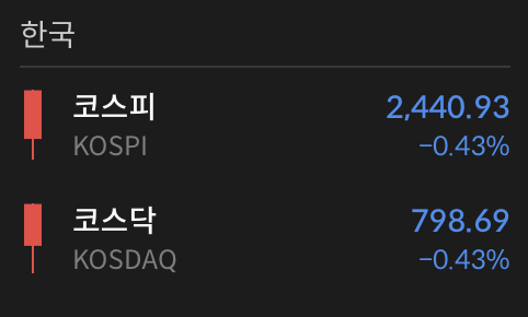 오전에 코스피 2400이 깨지면서 좀 암울하긴 했지만 미국 지수 선물이 양전 한 상태라 큰 부담은 안 느껴졌었다. 그리고 정말 제대로 기어 올라가며 약보합 수준으로 미국에 비하면 선방하며 마무리했다.