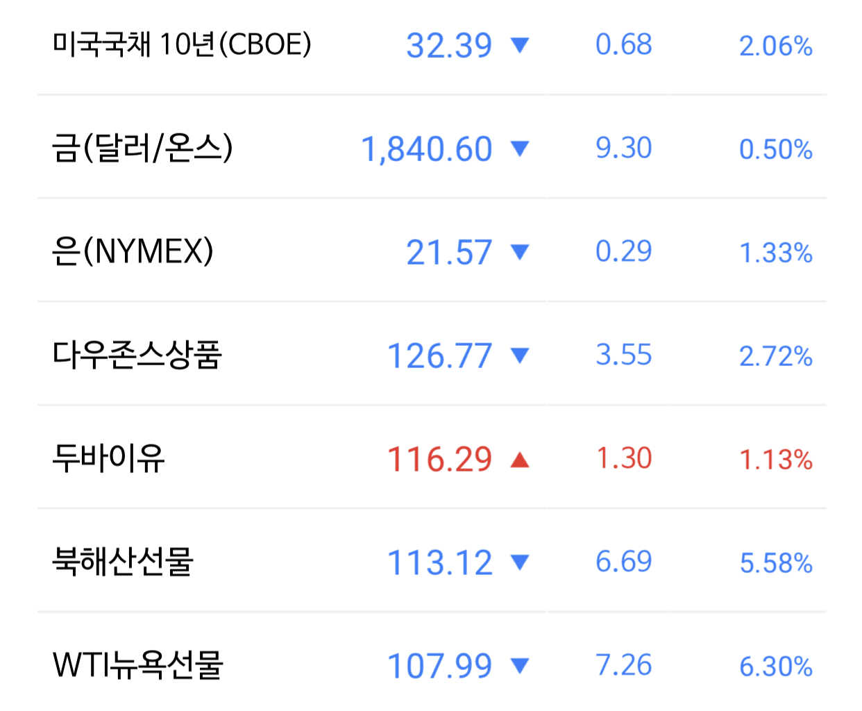 고물가의 주범으로 손꼽히는 원유 가격이 내렸다는 소식이 커뮤니티에서 들렸다. 그래서 살펴보니 두바이유는 좀 오르긴 했지만 미국의 대표적인 원유인 WTI유는 상당히 많이 내렸다고 보인다. 비록 선물 지수이지만 이게 미래의 가격일 수도 있으니 말이다.